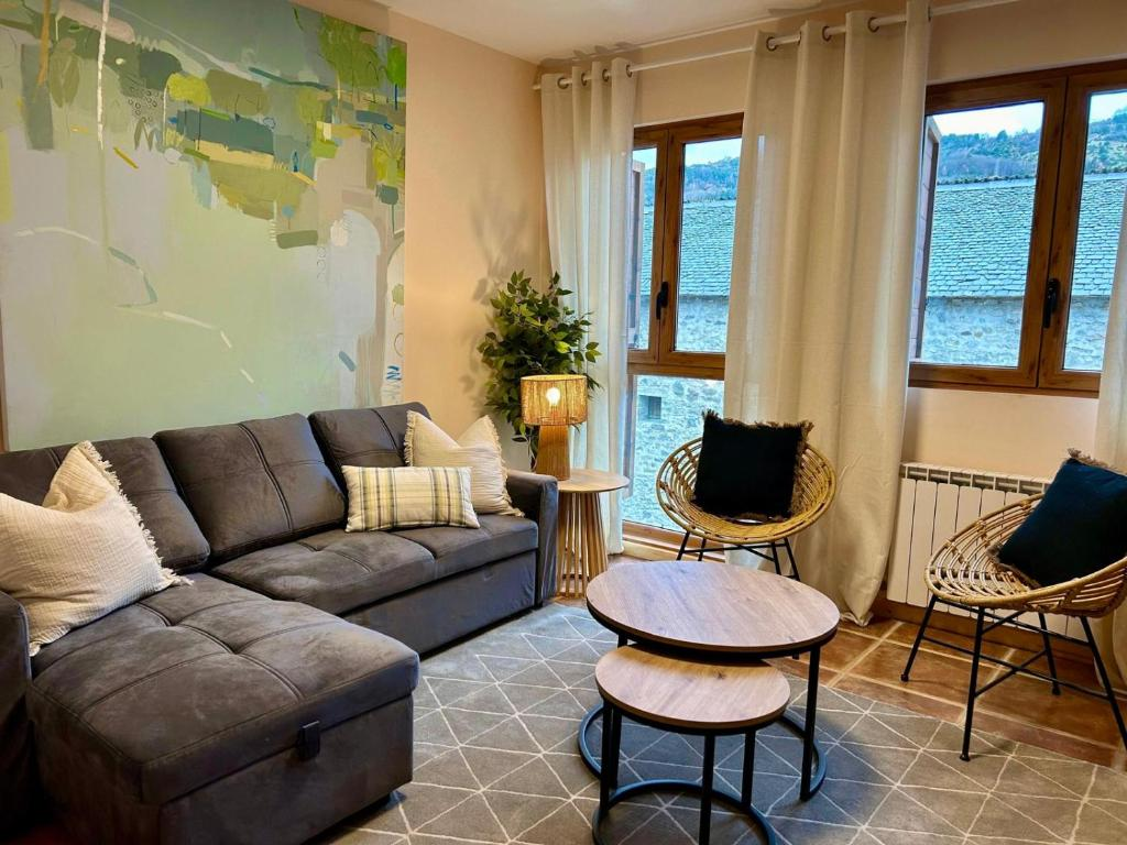 Ubicados dentro del pueblo de Escarrilla, cuentan con cocina equipada y baño completo con ducha de hidromasaje. La cocina está equipada con nevera, lavavajillas, microondas y lavadora. Disponen de ropa de cama y toallas. Cuentan con 2 plantas, en la planta de arriba está ubicada la habitación y en la planta baja se encuentra el salón, la cocina y un sofá cama, con capacidad para dos niños menores de 12 años o un adulto.